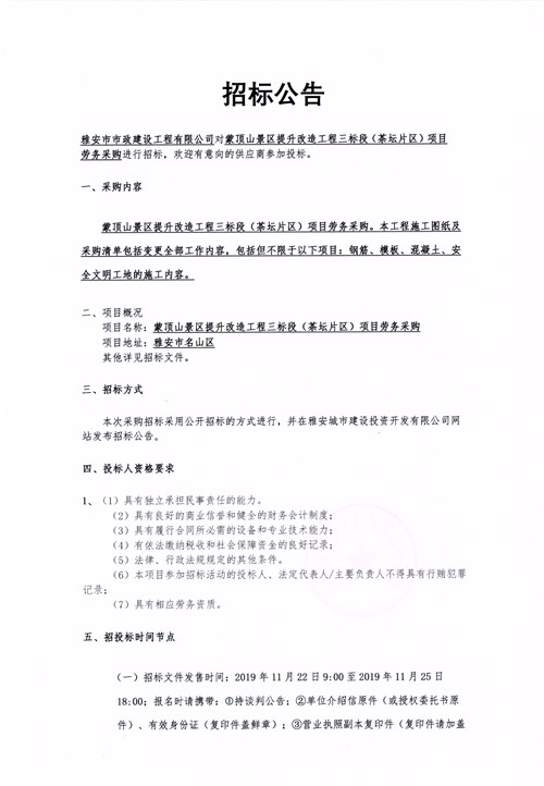 蒙頂山景區(qū)提升改造工程三標(biāo)段(茶壇片區(qū))勞務(wù)采購項目招標(biāo)公告
