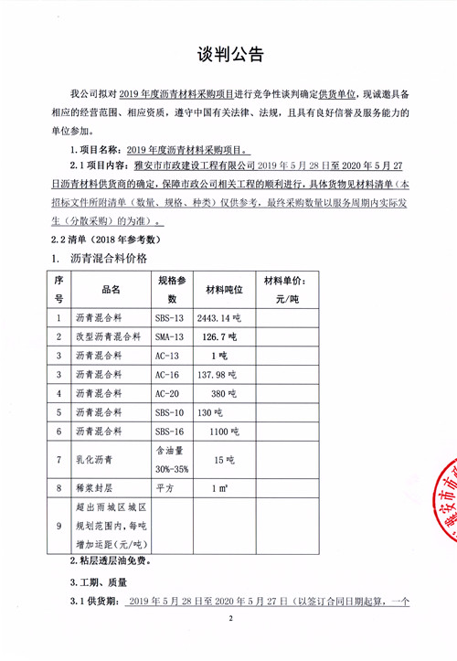 市政公司2019年度瀝青材料采購項(xiàng)目競(jìng)爭(zhēng)性談判公告