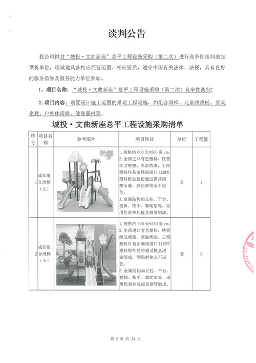 城投·文曲新座總平工程設(shè)施采購(gòu)(第二次)競(jìng)爭(zhēng)性談判