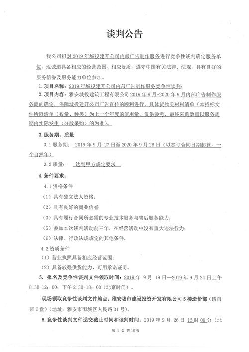 2019年城投建開公司內部廣告制作服務競爭性談判公告