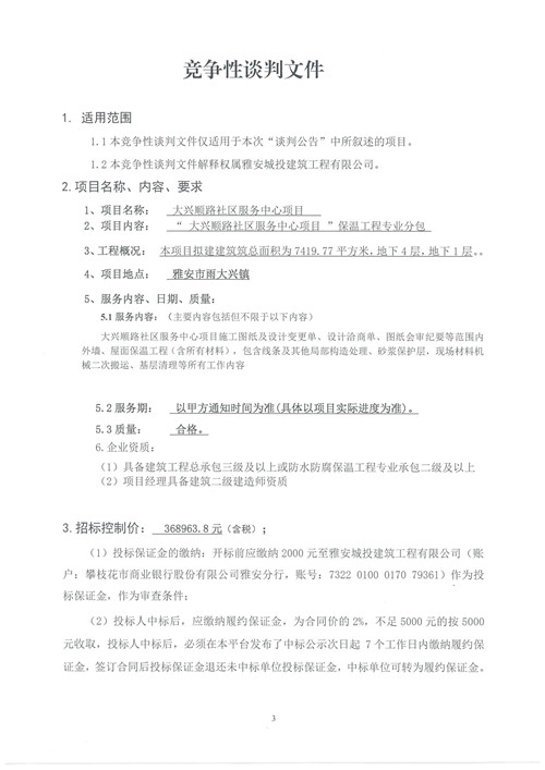 大興順路社區(qū)服務(wù)中心項(xiàng)目保溫工程專業(yè)分包競爭性談判公告