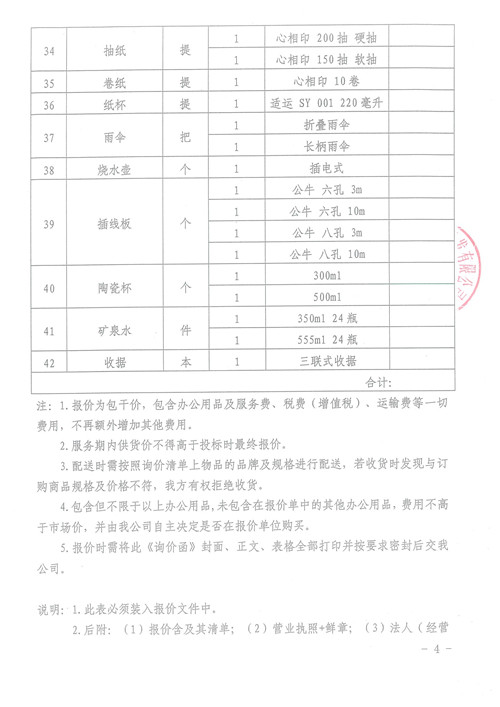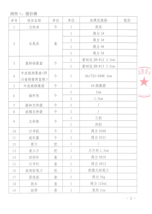 雅安城市建設(shè)投資開發(fā)有限公司辦公用品詢價