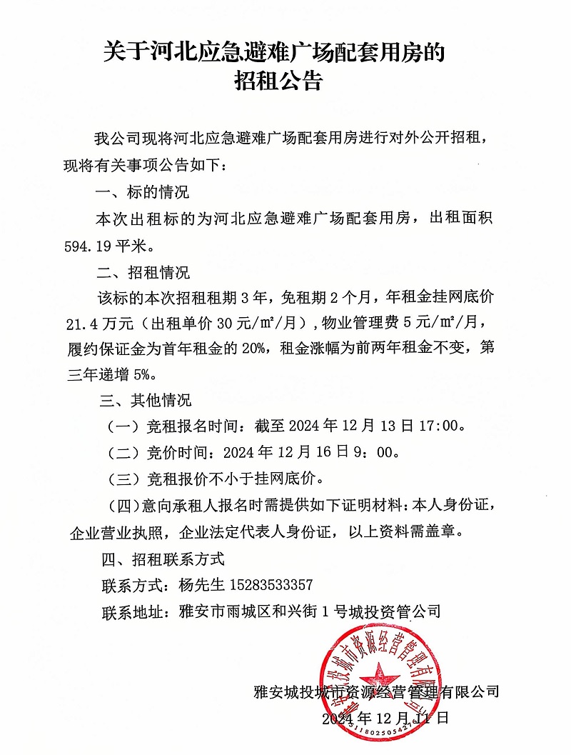 關(guān)于河北應(yīng)急避難廣場(chǎng)配套用房的招租公告