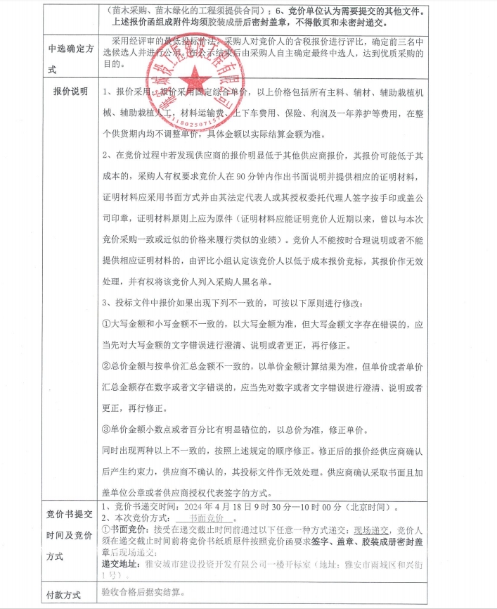 雅安大熊貓自然博物館游客接待中心及科普宣教中心項目綠化材料采購(二次)競價公告