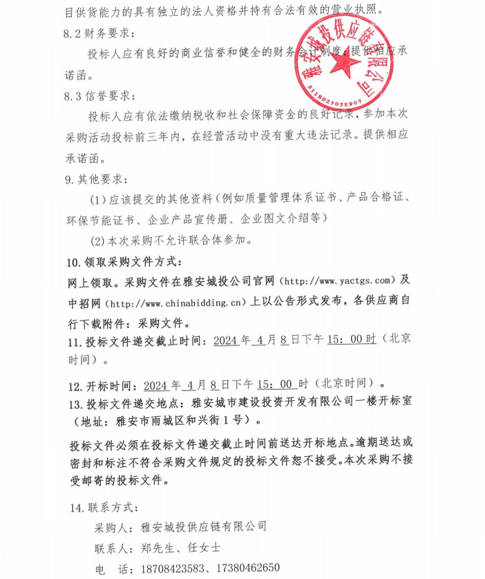 2024年4月至2025年3月雅安城投供應(yīng)鏈有限公司年度砂礫石材料采購(gòu)公告