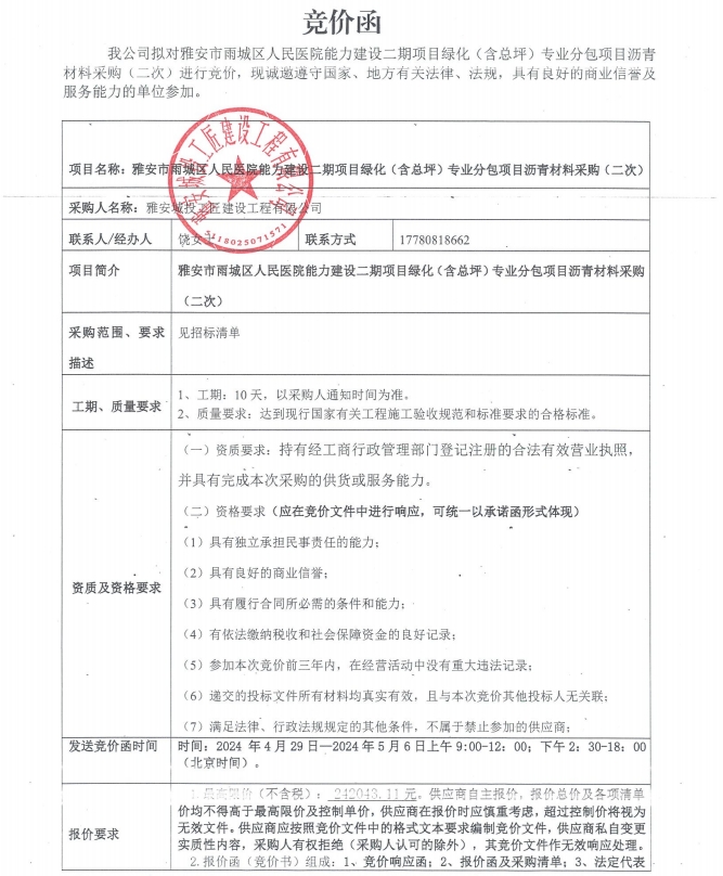 附件:競價函-雅安市雨城區(qū)人民醫(yī)院能力建設(shè)二期項目綠化(含總坪)專業(yè)分包項目瀝青材料采購(二次)