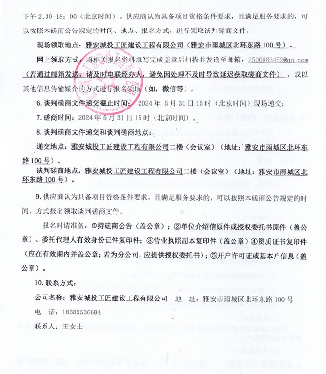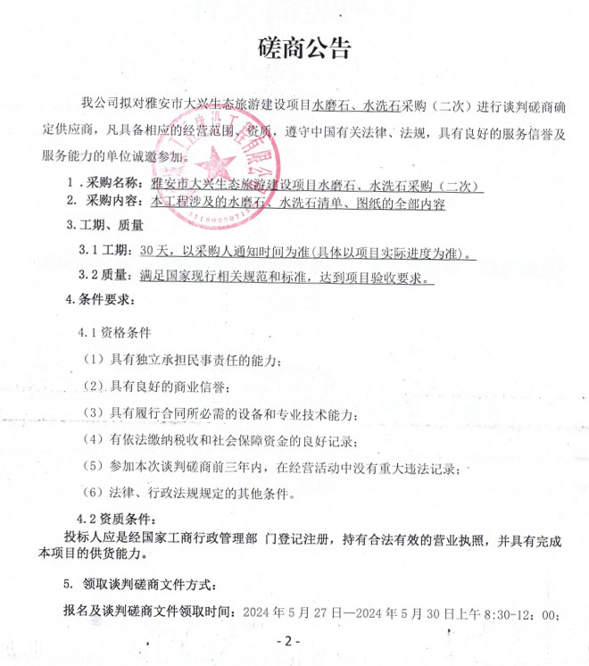 雅安市大興生態(tài)旅游建設項目水磨石、水洗石采購(二次)磋商公告