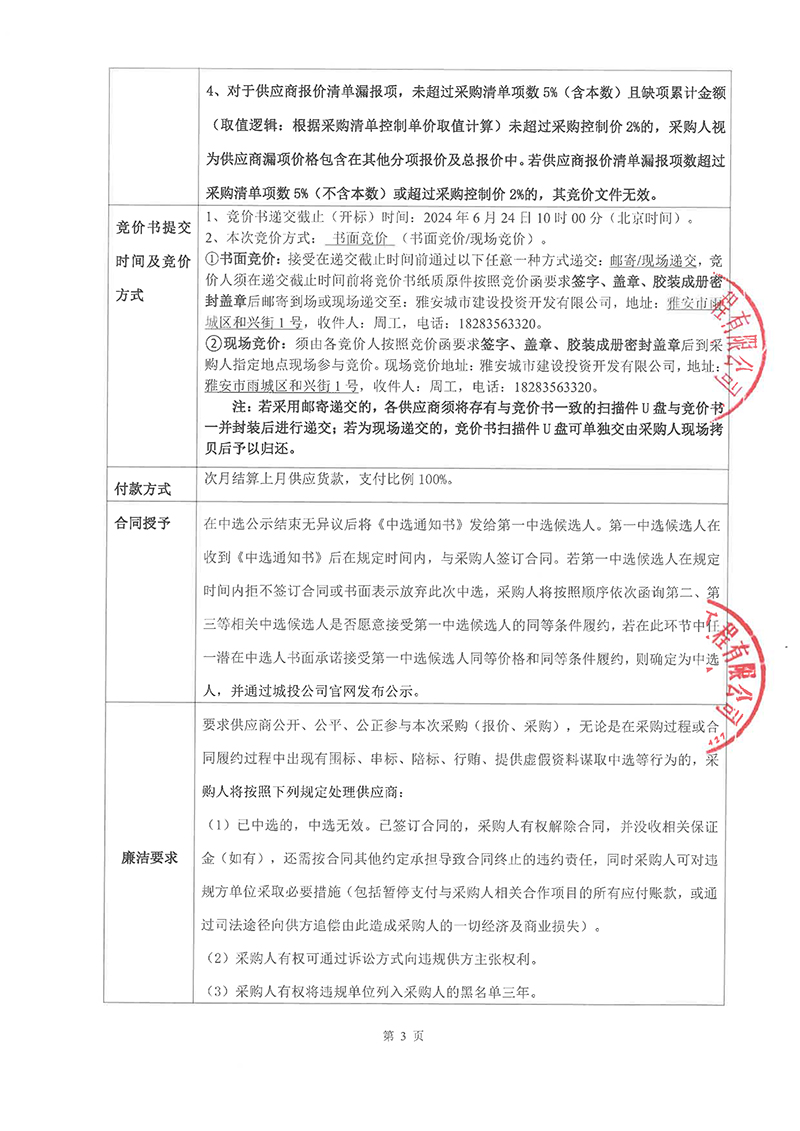城投建工、市政公司2024年6月-2025年5月防暑藥品采購競價函