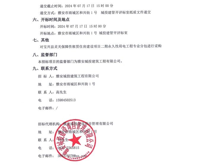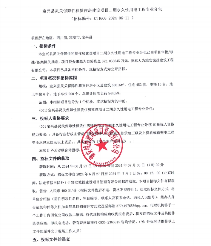 寶興縣靈關(guān)保障性租賃住房建設(shè)項(xiàng)目二期永久性用電工程專(zhuān)業(yè)分包公告