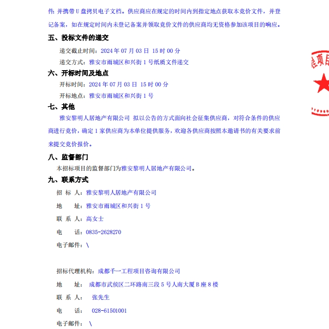 蒙頂壹號(hào)開荒保潔采購項(xiàng)目公告