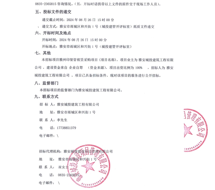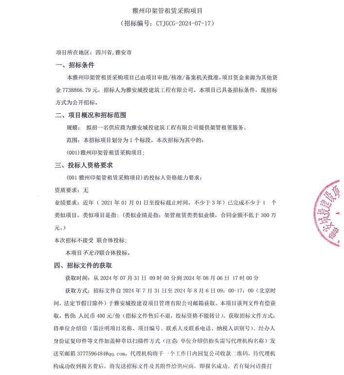 雅州印架管租賃采購(gòu)項(xiàng)目公告
