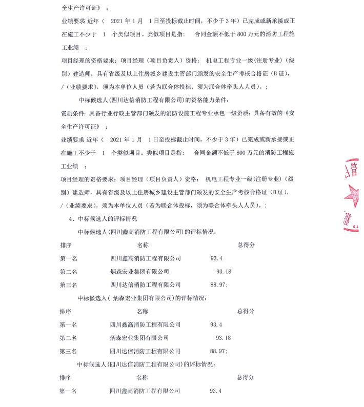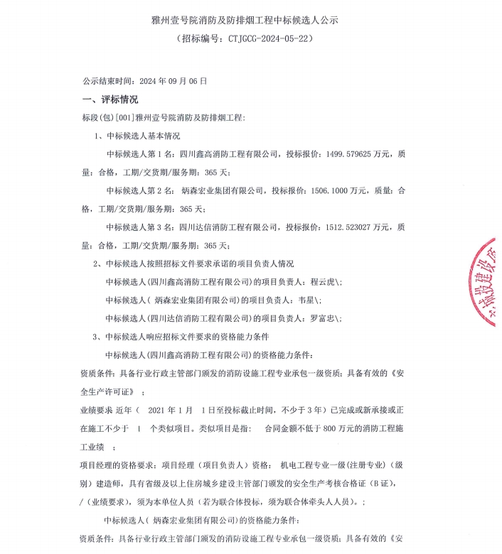 雅州壹號院消防及防排煙工程中標(biāo)候選人公示