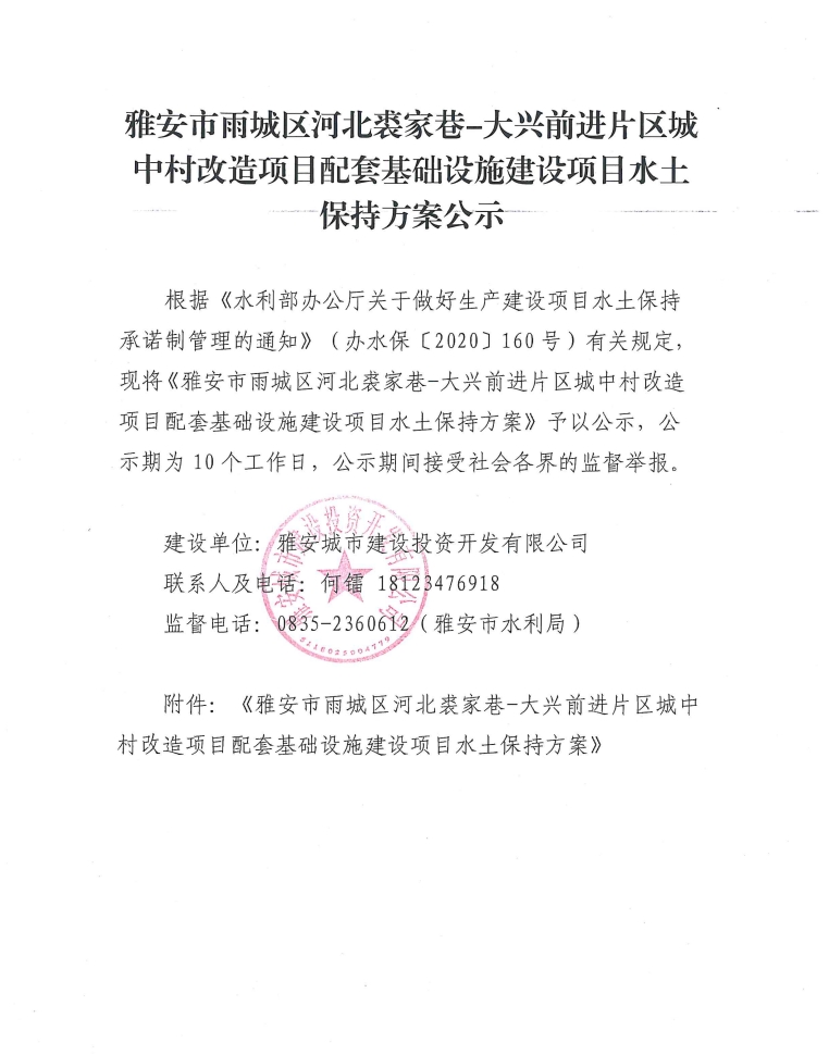 雅安市雨城區(qū)河北裘家巷-大興前進(jìn)片區(qū)城中村改造項目配套基礎(chǔ)設(shè)施建設(shè)項目水土保持方案公示