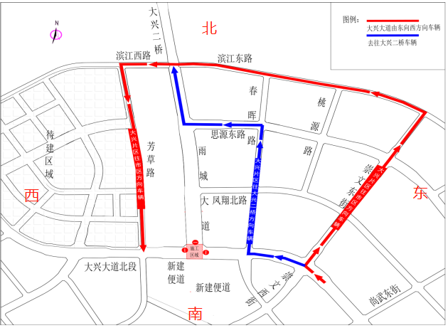 2.大興老場(chǎng)鎮(zhèn)片區(qū)前往大興二橋方向車輛:老場(chǎng)鎮(zhèn)-春暉路-思源東路-大興二橋