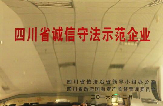 2016年12月榮獲“四川省誠(chéng)信守法示范企業(yè)”